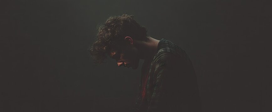 A person feeling sad, their eyes downcast and their shoulders slumped.