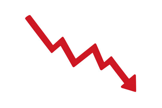 downfall red arrow graph falling down, market crash, and loss isolated on transparent background Remove png, Clipping Path, pen tool