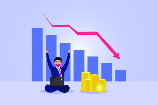 Stressed businessman with downtrend chart 2D flat vector concept for banner, website, illustration, landing page, flyer, etc
