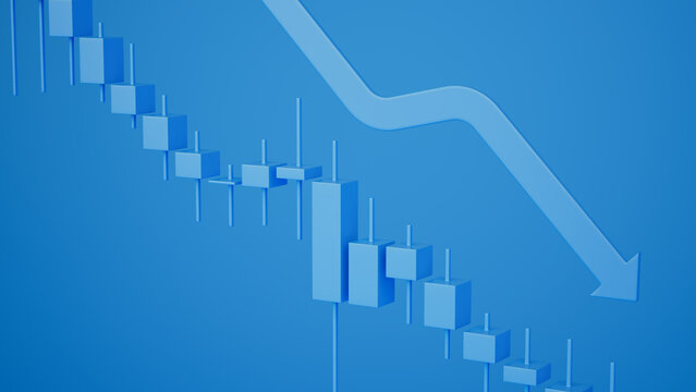 3D Financial Downturn: Blue Bear Market Graph with Downward Arrow