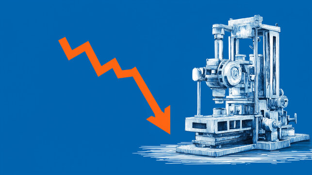 Economic Downturn:  A visual metaphor of economic decline depicted by an industrial machine, emphasizing the downturn and challenges faced by industry.