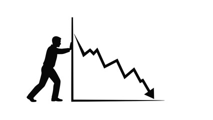 Silhouette of a determined businessman struggling to hold back a sharply declining stock market graph representing financial crisis and economic downturn fears