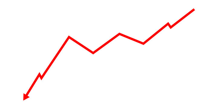 Red stock market crash chart with downward trend arrow and candlestick graph showing financial loss