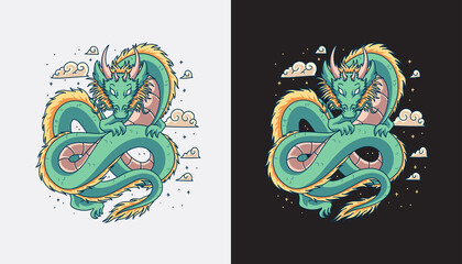 Western dragon t-shirt design printing, Generate AI.