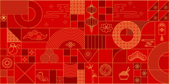 Modern classical geometric traditional chinese banner. Flat vector decoration.