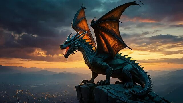 dragon in the sky standing of the top of rock