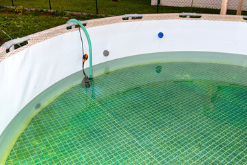 Realistic DOF camera 3D animation of the draining blue water rendered in UHD with alpha matte