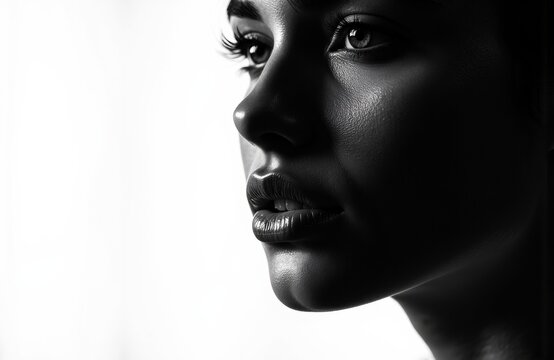 In this black and white photo the backlighting creates a dramatic contrast between light and shadow on the persons face.