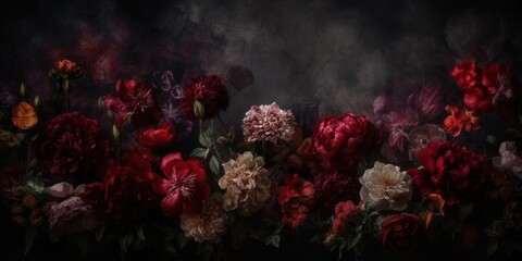 Abstract floral art with textured teal flowers in varying sizes, set against a dramatic and shadowy background.
