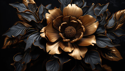 Abstract Black and Gold Flower with Swirling Petals
