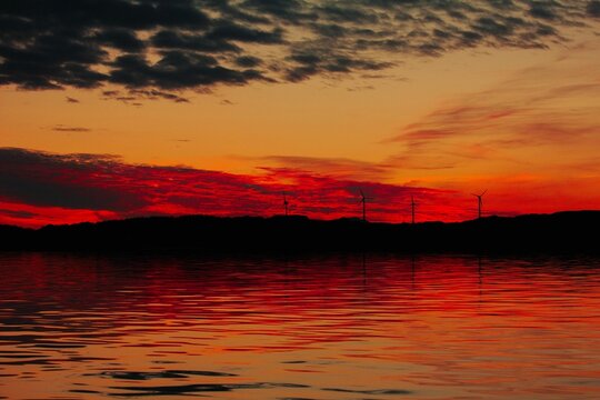 Breathtaking view of dark orange sunset cloudscape reflected in the sea - beautiful wallpaper