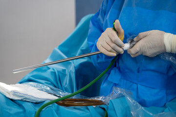 Abdomen of patient ready for bariatric surgery under sterile surgical drapes