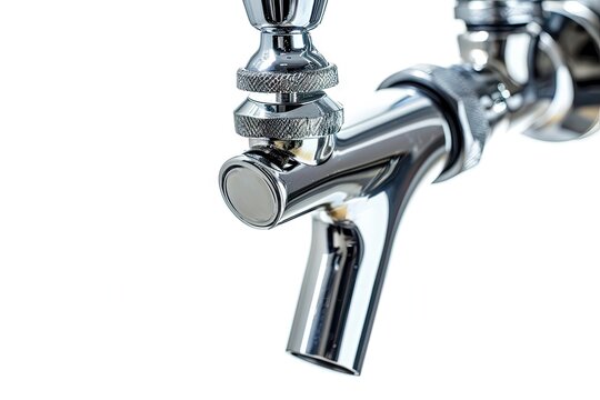 Closeup of a beer tap on a white background