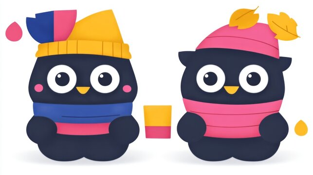 Whimsical winter animals illustration with unique textures and playful color combinations for seasonal greeting cards and children's designs