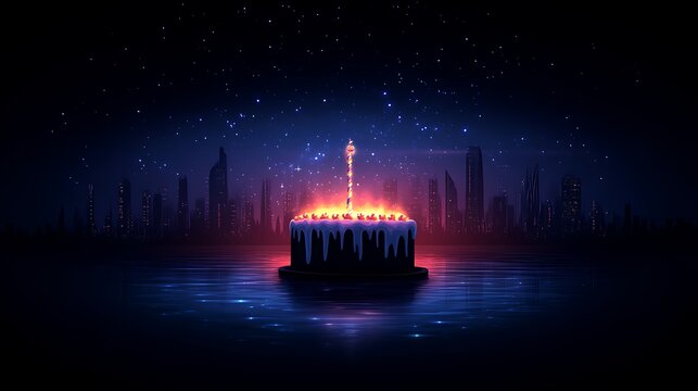 Festive Birthday Cake With Lit Candles And Stars