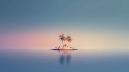 lonely little island with palm trees in the sea minimalism landscape.