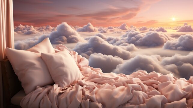 Sunset Dreamscape: Cushioned Comfort Above the Clouds