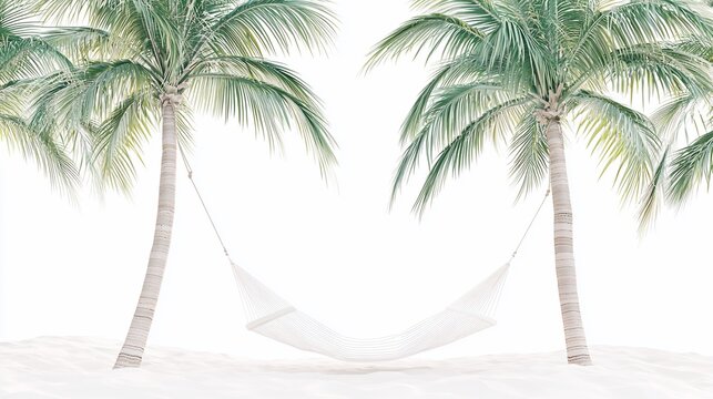 Tropical serenity, a dreamy beach scene with palms and a white hammock
