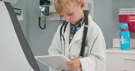 Black little girl dressed up as a veterinarian holding a dog, professional portrait