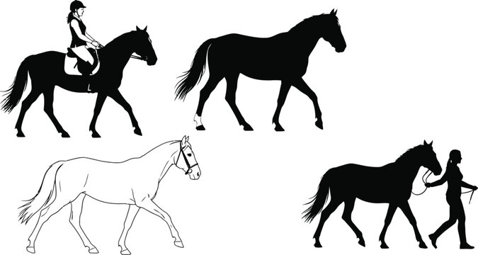 Horse silhouettes equestrian training dressage vector graphics
