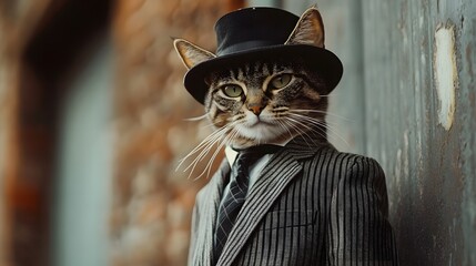 A cool-looking cat dressed in a mafia-inspired suit strolling confidently