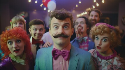 monkey wearing sunglasses and a yellow shirt is peeking out of a hole in a wall. The image has a playful and lighthearted mood, as the monkey is dressed up in a funny outfit