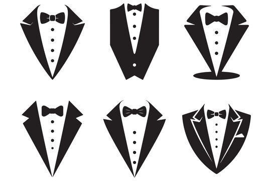 Tuxedo Icons Set – Bow Tie Suit Vector Symbols for Formal Wear Design