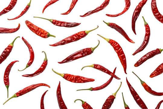 Dried Spicy Red Chili Peppers Pattern: A vibrant and fiery pattern of scattered dried red chili peppers. Perfect for adding a touch of heat and excitement to your culinary or design projects.