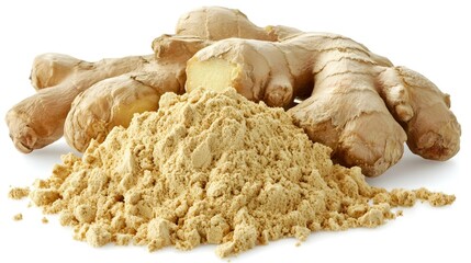 dried ginger root Isolated on white background. cooking ingredients for healthful food concept for designer