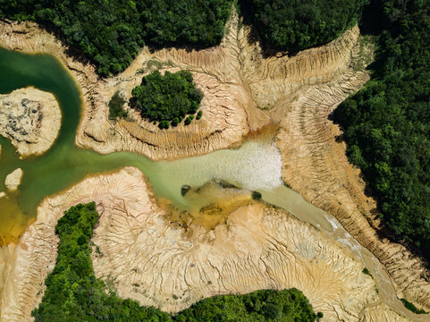 Drone photo of a dried up lake in Penang, Malaysia.