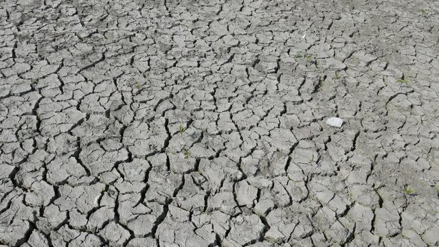 Lifeless desert land dry lake bed with cracked ground. Drought and crisis environment. Global warming. Waterless soil due lack of moisture