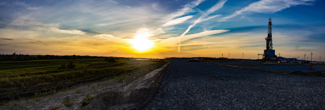 panarama rig on sunset background