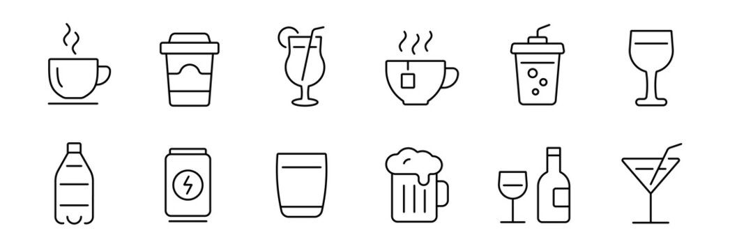 Drink thin line icons collection. Editable stroke. Vector