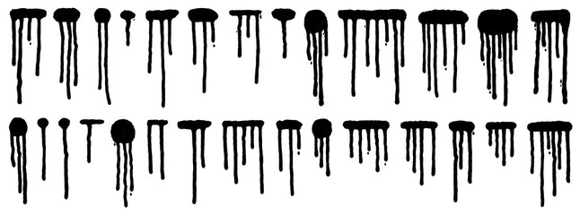 Dripping paint drips background. Excellent drips illustration. Collection of dripping paints.	Black dripping ink painted oil drips liquid drops art messy paint splatter melt fluid spots.