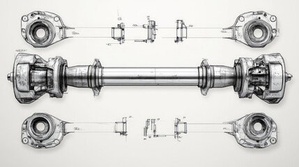 Car suspensions. Close up of a car suspension parts system such as CV joint Rubber boot and Control arms bushing Steering rack axles Shock absorber suspension Brake. Repair and spare parts for cars.