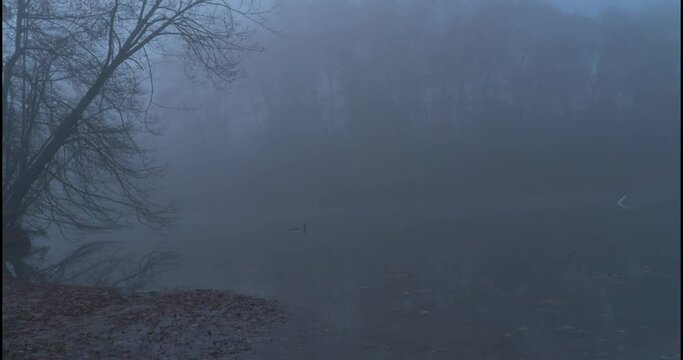 Foggy water camera pan right. Dark and creepy vibe.