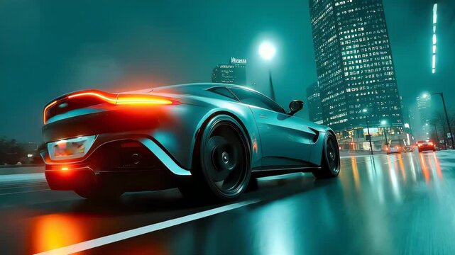Fast Sports Car Driving Through Dry Desert Landscape