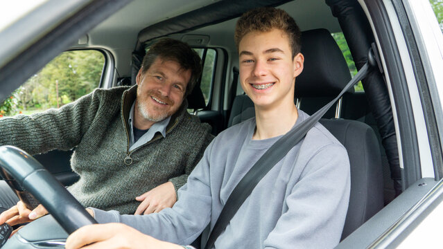 Proud young black woman driver smiling behind the wheel as she driving car, with her partner smiling in support, enjoying the road together, closeup