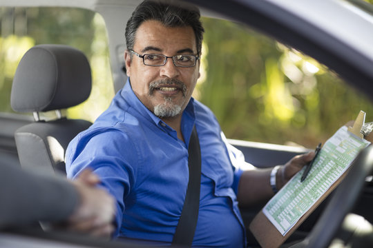 Instructor Congratulating Learner Driver after Practical Driving Exam