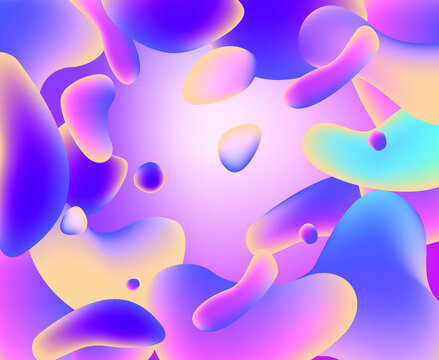 Abstract geometric shapes with neon gradient like in lava lamp. Futuristic cover with liquid organic smooth blobs.