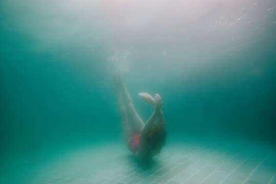 Silhouette of a girl in the water in Red Sea. Drowned. in Red Sea. Filming a movie.