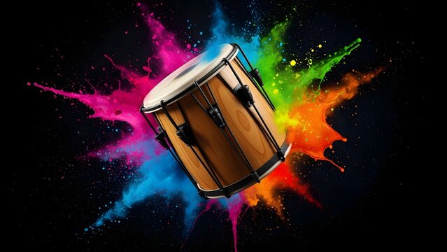 Vibrant holi celebration with traditional dhol drum