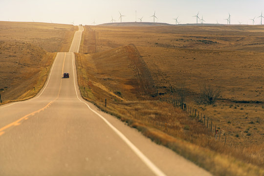 Breathtaking sunset casting a warm, golden glow over a vast, rolling prairie field of dry grass