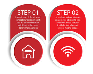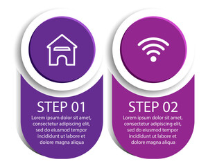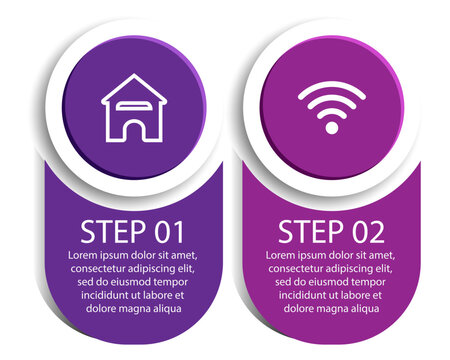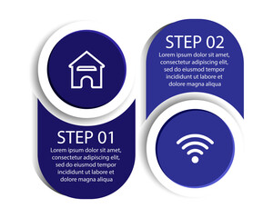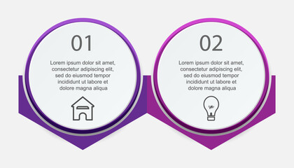 Infografis 2 langkah, desain infografis simpel terdiri dari dua bagian yang saling berkaitan, desain lingkaran dipadu garis, ikon dan warna, bagus untuk presentasi bisnis Anda