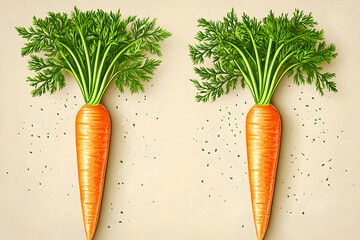 Dua Wortel dengan Bagian Atas Hijau di Latar Belakang Beige