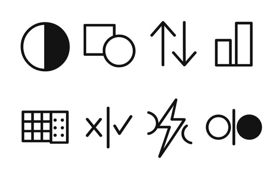 Contrast and Duality Icons. General Difference linear set: split circle, contrasting shapes, dual arrows, comparison bar, varied patterns, opposite markers, contrast spark,