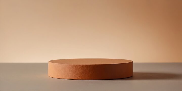 Minimalistic simple mock up background with a podium pedestal for products, soft orange apricot color.