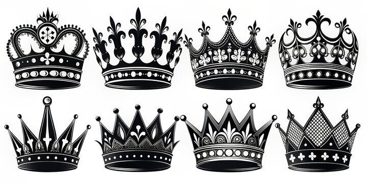 Black and White Crown Set 8 Royal Symbols,  crown, king, queen, royalty