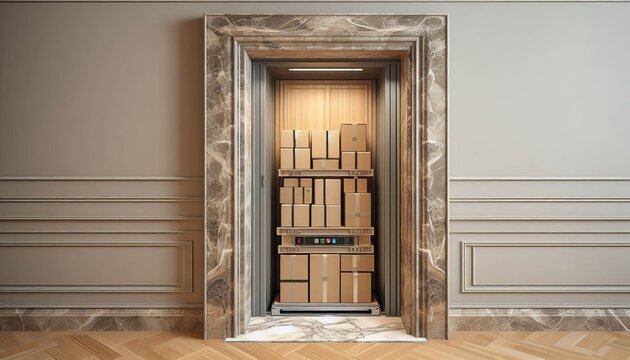 Dumbwaiter lift elevator in a luxurious kitchen for transporting food and goods, dumbwaiter, lift, elevator, kitchen