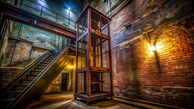 Long Exposure Photo of a Vintage Dumbwaiter Ascending in a Dark Shaft